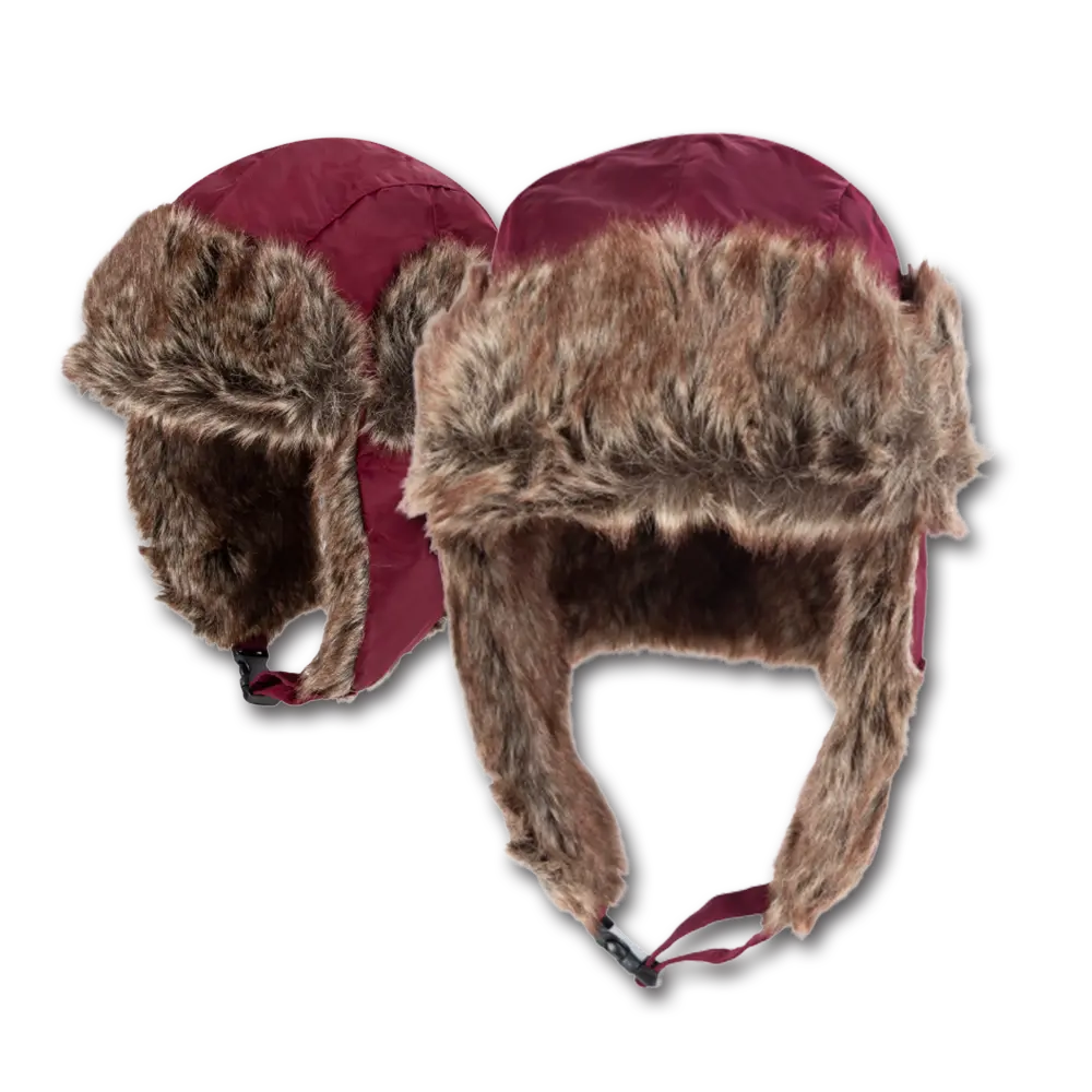 Trapper Hat – Faux Fur – Heavy Duty Nylon – Waterproof – Imported – Burgundy / Wine, 1 piece